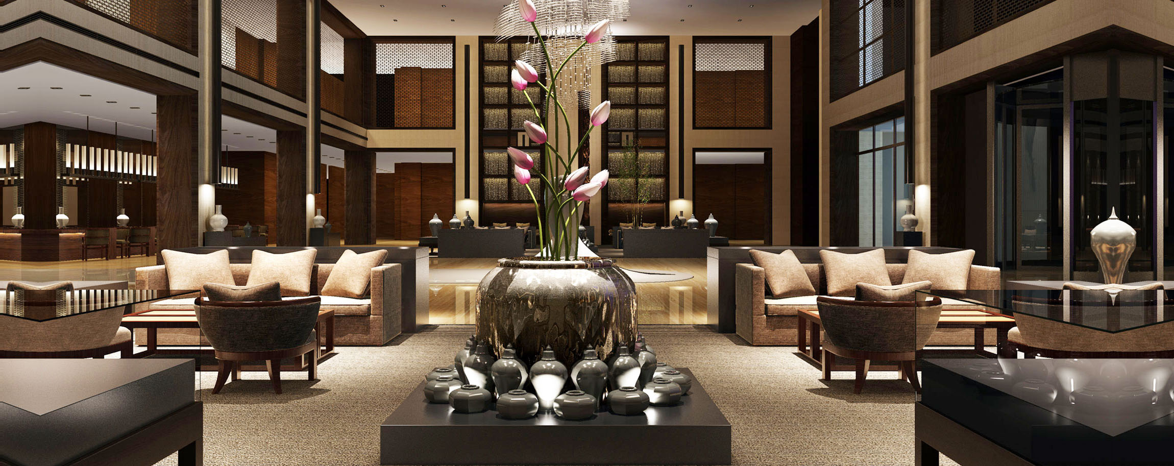 [样板间设计]1棕榈滩新中式样板间效果图,营造出优雅...